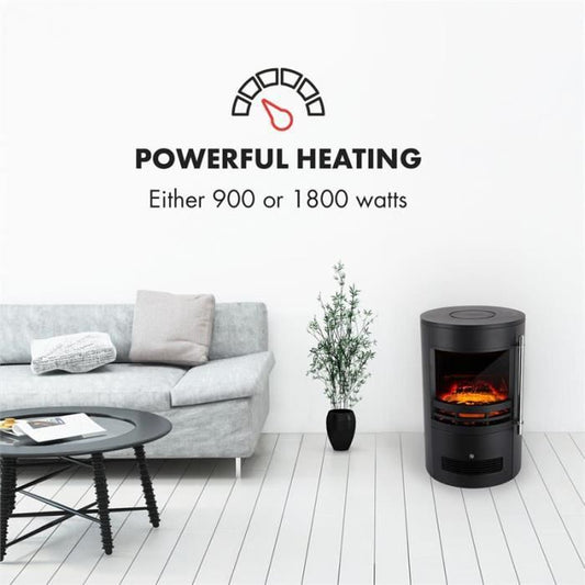 Klarstein Cheminée électrique avec simulation de flammes – 2 puissances de chauffage 900W – 1800W – Thermostat réglable – Noir